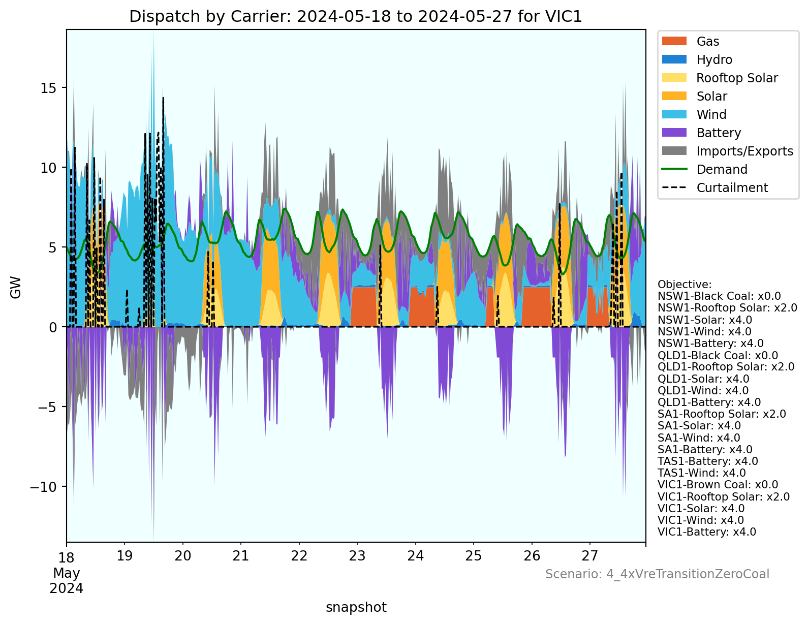 I’ve now added a new 5-min resolution network scenario to the web app. The 8.4.1_ZeroThermal scenario is a battery scale-up scenario with no thermal generation. This scenario only covers the problematic months of May and June 2024 where there were multiple low-wind events. The full year at 5-min resolution network is too large to serve via the web app.